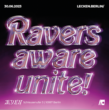 When we start to think about our party as a temporary community, we are all co-producers of the rave space, our personal pleasure entwined with the pleasure of others, attentive, accountable and open to one another. A great rave is a space of Ravers Aware Unite!